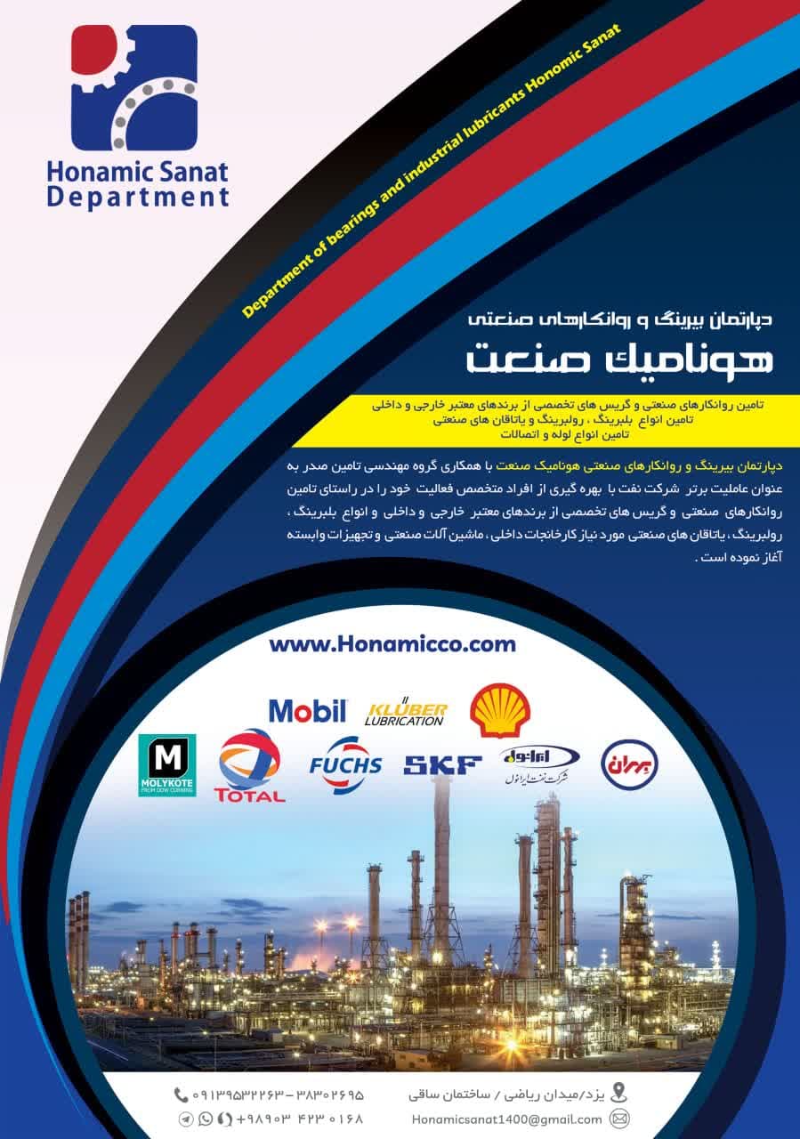 دپارتمان بیرینگ و روانکارهایی صنعتی هونامیک صنعت با همکاری گروه مهندسی گروه مهندسی تامین صدر به عنوان عاملیت برتر شرکت نفت با بهره گیری از افراد متخصص، فعالیت خود را در راستای تامین روانکاری صنعتی و گریس های تخصصی از برندهای معتبر خارجی و داخلی و انواع بلبرینگ، روبلینگ یاتاقانهای صنعتی مورد نیاز کارخانجات داخلی، ماشین آلات صنعتی و تجهیزات وابسته آغاز نموده است.